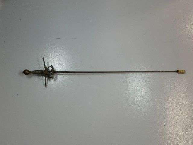 Epée pour la décoration. Garde à anneaux et 2 quillons droits. Lame triangulaire.