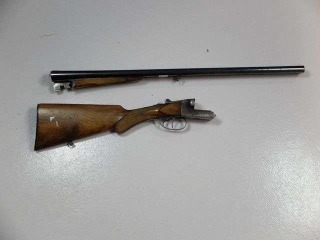 Fusil Verney-Carron, modèle Hélice 33. 2 coups, calibre 12/65, extracteur. Canons juxtaposés de 70 cm. Crosse demi-pistolet, en noyer, de 36,5 cm, en partie quadrillé. (dans l’état) Avec un étui jambon recouvert de toile, renforcé de cuir. (usures et accidents au cuir) Catégorie D1 soumise à enregistrement L’acquéreur devra présenter OBLIGATOIREMENT la carte d'identité et le permis de chasser français uniquement, en cours de validité (2017/2018) ou licence de tir française uniquement, en cours de validité. Pour les personnes étrangères n’ayant pas ces papiers, ils devront se faire représenter par un armurier français pour l’achat.