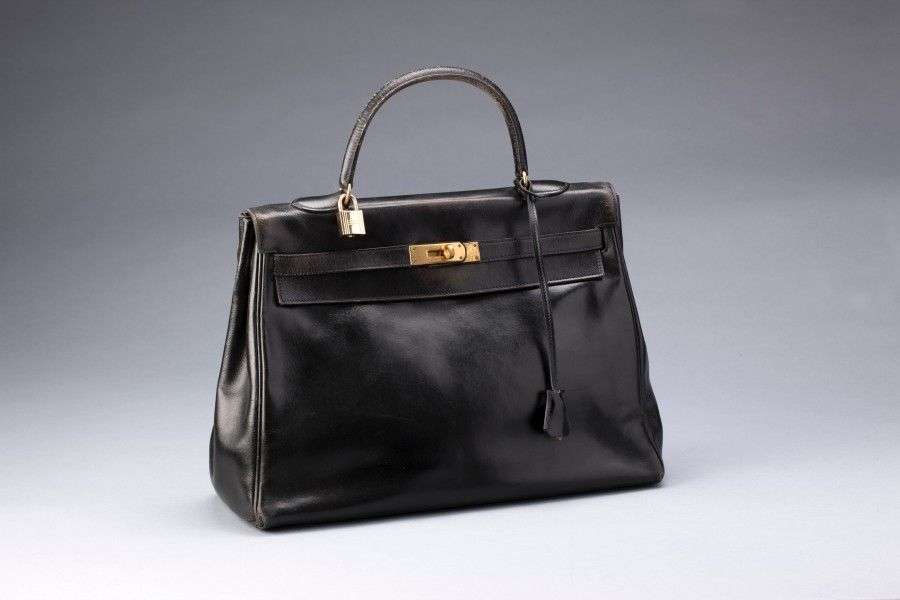 Sac "Kelly" en cuir noir, poignée simple en cuir permettant un portage main.
