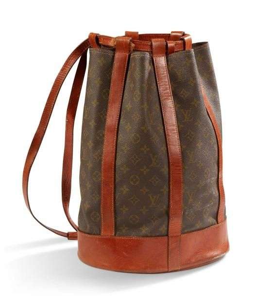 Sac à dos randonnée en toile monogrammée et cuir naturel. Garniture en métal doré. Anse en cuir permettant portage dos. A l'intérieur, pochette zippée amovible, plaquée par boutons pression.