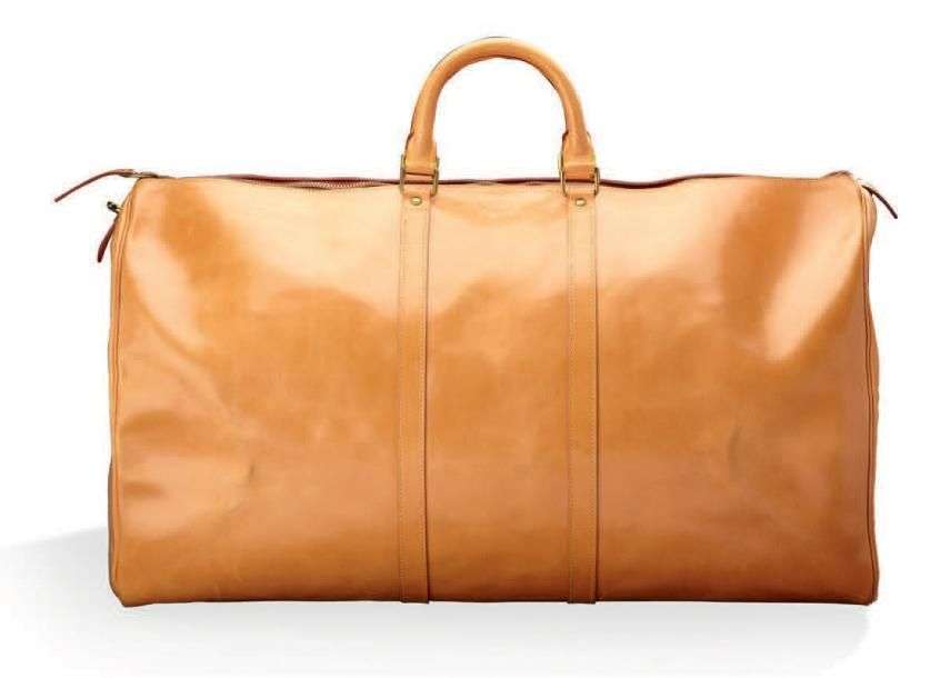 Sac "Keepall" en cuir naturel gold. Monogramme JPCT Quelques griffures et taches.