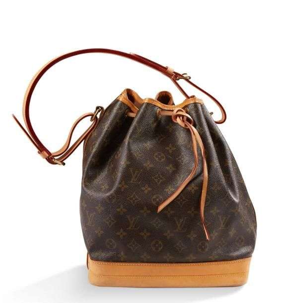 Sac Noé en toile monogrammée et cuir naturel. Garniture en métal doré. Anse simple ajustable en cuir permettant un portage main ou épaule. Ouverture par liseret en cuir.