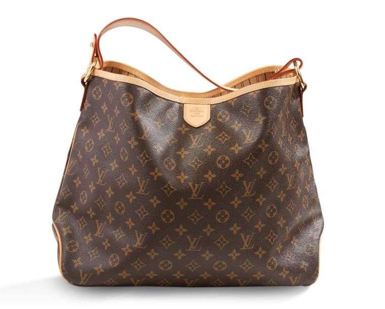 Sac "Delightful" en toile monogrammée et cuir naturel. Garniture en métal dorée. Anse en cuir permettant un portage épaule. Intérieur en tissu imprimé beige. Poche plaquée zippée.