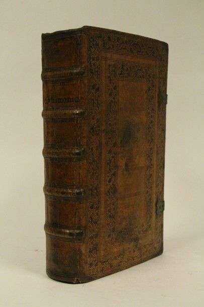 Anverpiae, Iacobum Meursium, 1652| trois tomes reliés en un fort volume in-folio, veau fauve à double encadrement décoratif sur les plats, avec des fleurs, des cerfs, des chiens et des hommes armés d'une pique, à froid| fermoirs (reliure de l'époque).