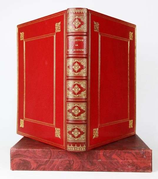 CATALOGUE DE VENTE. Collection de Madame Roussel. Tableaux anciens, objets d'art et importants bijoux. Paris, Galerie G. Petit, 23-24 Mars 1912. In-4°, maroquin rouge, plats à la Du Seuil, encadrement doré, triple filet, dos très orné, tranches dorées, étui (Gruel).