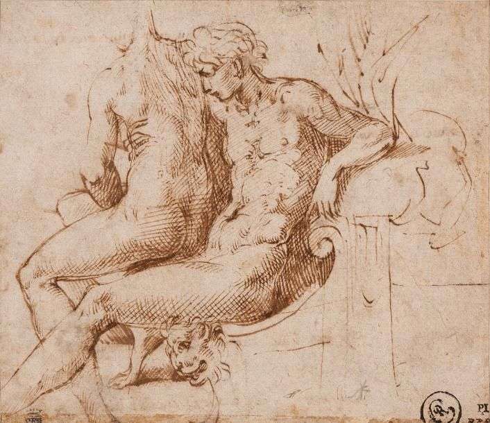 David Eskerdjian, a été le premier à publier ce dessin qu'il situe dans la deuxième partie de la carrière du Parmesan, vers 1530 - 1540, lors du retour de l'artiste à Parme. Il rapproche cette oeuvre d'un dessin de composition très proche, conservé au musée de Budapest (voir