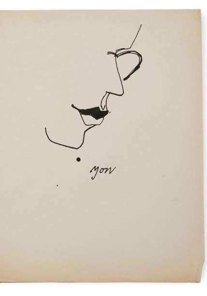 Warhol, représentant la moitié d'un visage d'homme portant des lunettes. Circa 1953| 27,5 x 21,5 cm, sous encadrement.