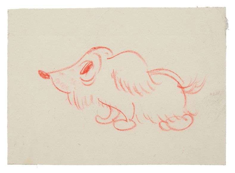 Dessin au crayon de couleur rouge sur papier contrecollé sur un carton 7,5 x 10,5 cm