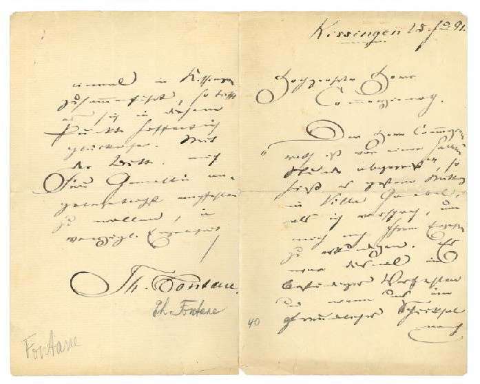 Punkte hoffentlich glücklicher»), et pourront être présentés à sa femme... [Fontane et sa femme séjournèrent du 3 au 30 juin 1891 à Bad Kissingen, et se plaignirent de l'ennui de la société locale.]