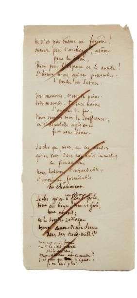 La strophe non retenue présente une alternative dans le premier vers: «cet affreux» inscrit au-dessus du «ce fatal» original: «Sache qu'en ce fatal pôle, Tout est bagne, tout est geôle, Tout est exil
