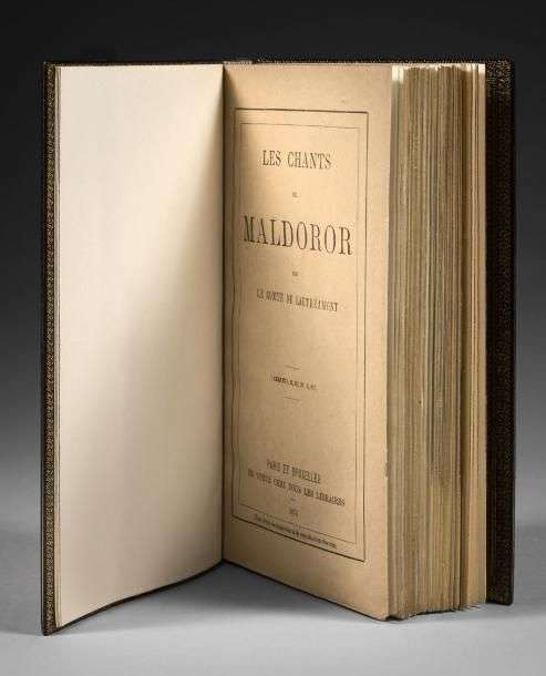 Original edition (Chants I,II,III, IV,V, VI). Paris, Bruxelles, en vente chez tous les libraires, 1874. In-8, maroquin noir encadrement de 4 filets à froid sur les plats, dos à nerfs orné de caissons à froid.
