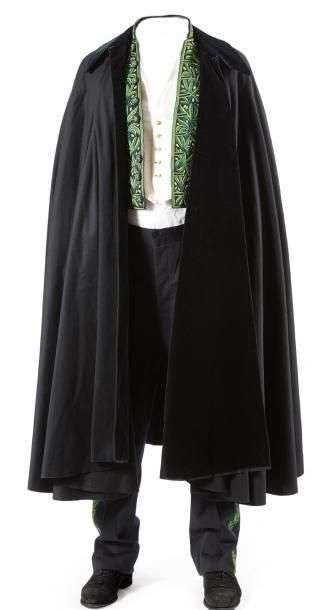 OF PAUL MORAND with an embroidered jacket, vest, pants and a cape with his name inscribed in black velvet.