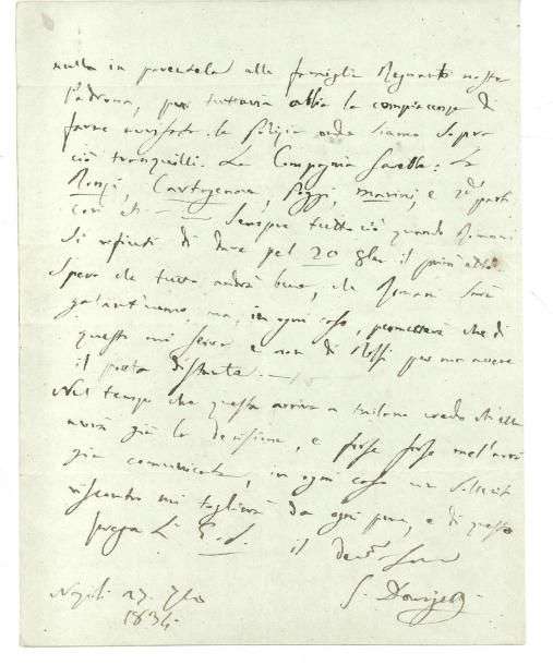 Signed autograph letter, Napoles, 27 September 1834, addressed to the Duke