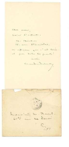 Je me remets au boulot - (le nouveau) la semaine qui vient. Reçu lettres d'Allemagne qui me réclament. On verra»... Il envoie ses amitiés aux Zao-Wou-Ki et Michaux... [Les huit entretiens de Varèse avec Georges Charbonnier, diffusés à la RTF du 5 mars au 30 avril 1955, avaient alors un grand retentissement.]