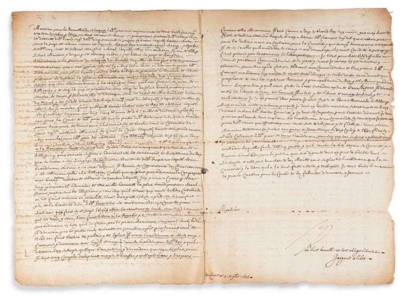 [EGYPT]. Signed autograph letter by the traveller Jacques ALBERT, Cairo 4 November 1633| 3 pages in-fol.