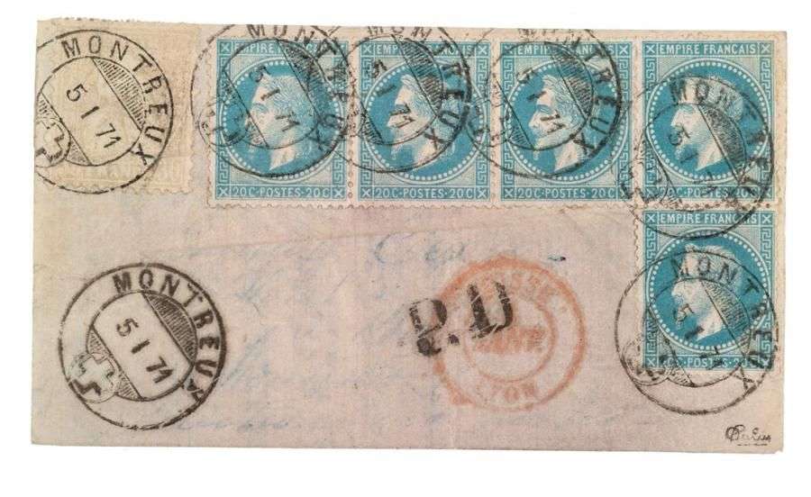 P.D. et cachet d'entrée Suisse par Lyon 6 janv. (71) en rouge.