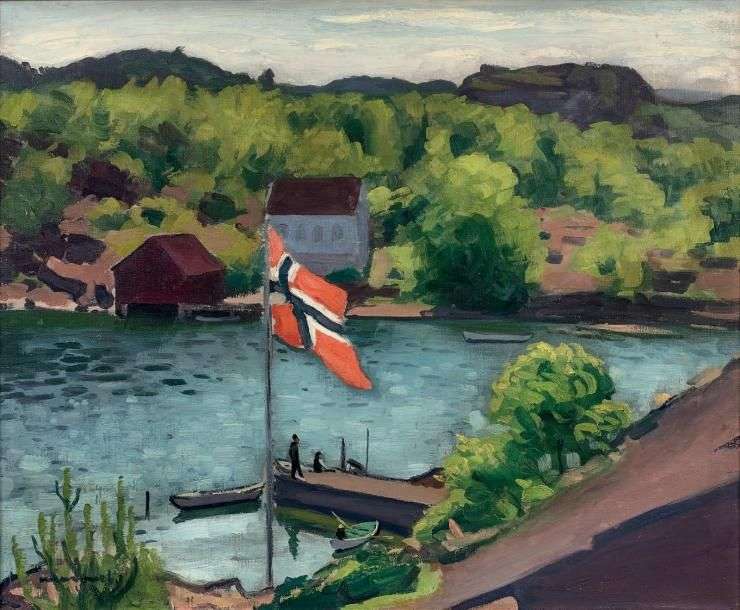 Hesnes, le drapeau norvégien Huile sur toile, signée en bas à gauche