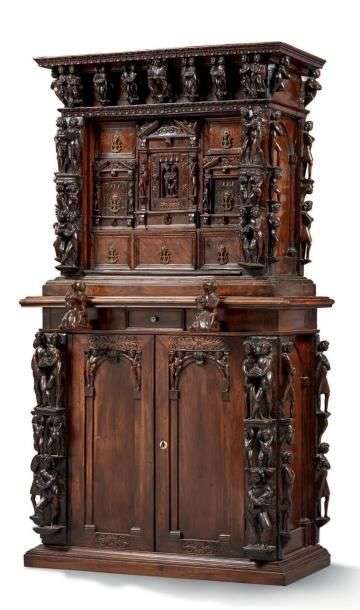 STIPO à deux corps en bois de noyer très richement sculpté.