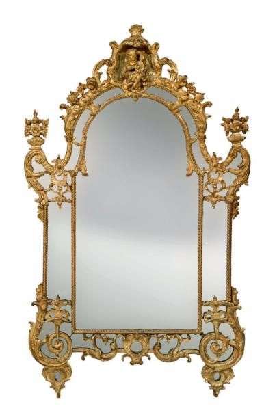 BEAU MIROIR à parecloses en bois sculpté et doré.