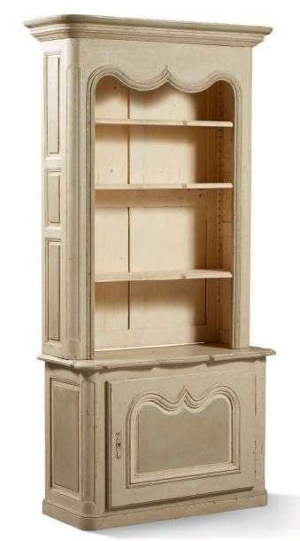 PAIRE DE BIBLIOTHÈQUES en bois mouluré, rechampi gris ou crème.