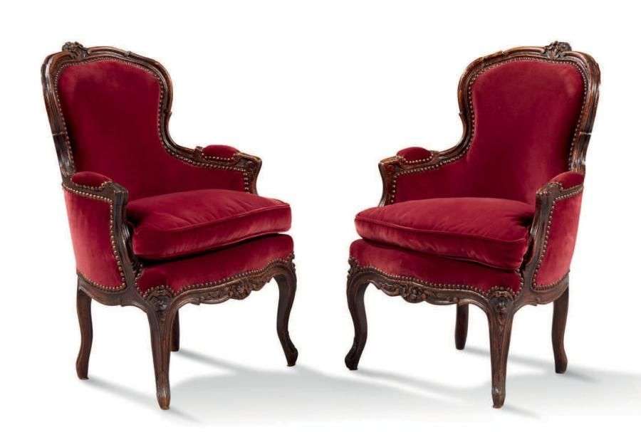 PAIRE DE PETITES BERGÈRES d'enfant en bois naturel mouluré et sculpté de nervures et fleurettes.