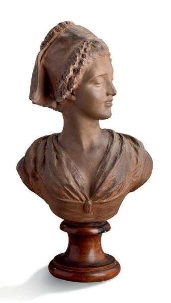 Buste de jeune femme au ruban