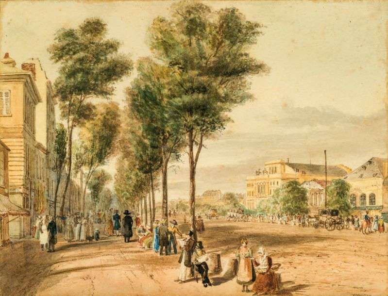 Promeneurs boulevard du Temple à Paris, sous la Restauration