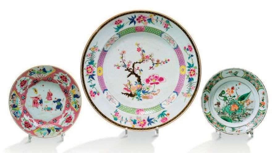On y joint une assiette de la famille rose et une assiette famille verte.