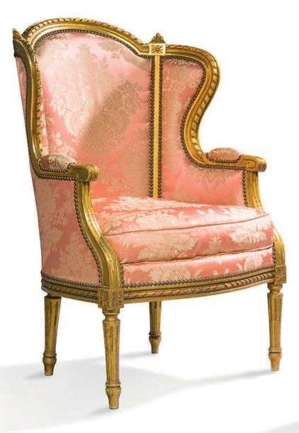 BERGÈRE À OREILLES en bois mouluré sculpté et doré.