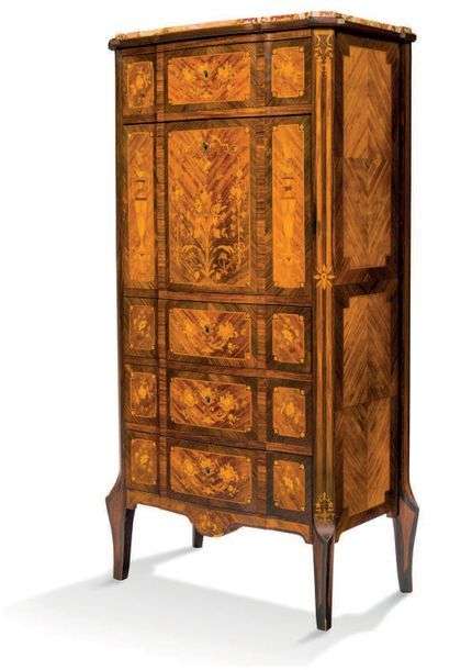 SECRÉTAIRE à léger ressaut en marqueterie à décor de bouquets et vases fle
