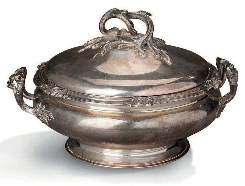 LÉGUMIER COUVERT en argent, modèle rocaille, prises et anses à volutes feu