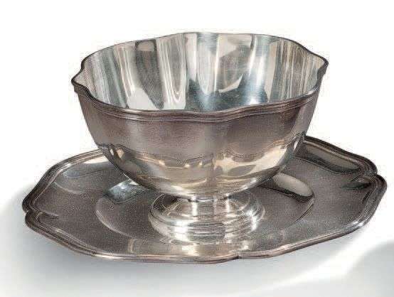 PAIRE DE SAUCIÈRES en argent, modèle à filets, bordures chantournées.