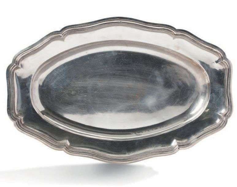 PLAT OVALE en argent, modèle à filets, bordure chantournée.