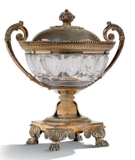 AIGUIÈRE en cristal taillé et à monture en argent à motifs rocaille.