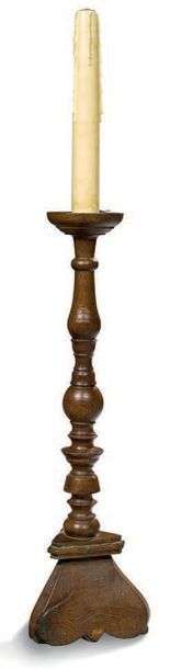 PAIRE DE PIQUES CIERGE en chêne en bois tourné