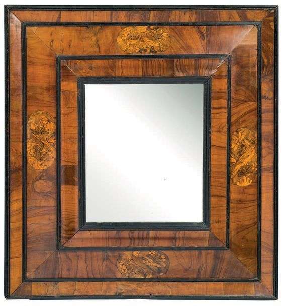 MIROIR en marqueterie de bois de placage à décor de fleurs. Fond renforcé.