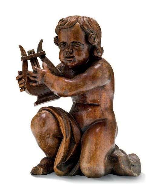 ELÉMENT SCULPTÉ D'ANGELOT À LA LYRE XVIIIe siècle