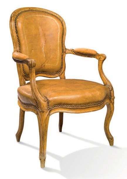 FAUTEUIL à dossier cabriolet en bois naturel mouluré et sculpté à décor de nervures.