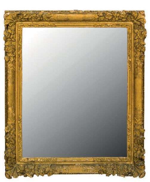 MIROIR dans un cadre en bois mouluré sculpté doré à décor de fleurettes.