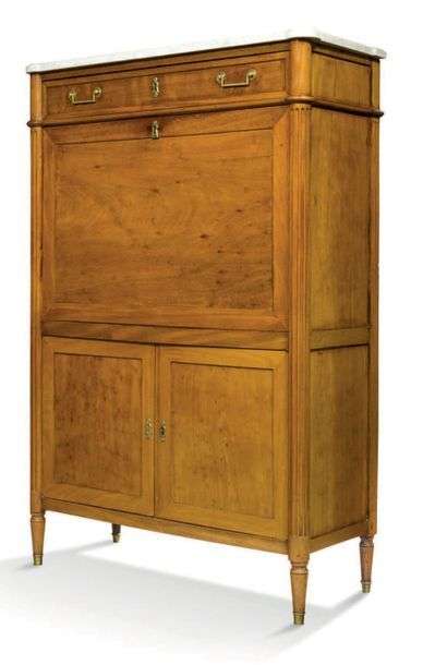 SECRÉTAIRE en acajou et placage d'acajou, il ouvre par un abattant, un tiroir en partie haute et deux vantaux en partie basse.