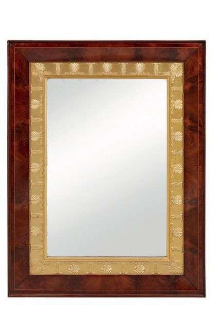IMPORTANT MIROIR rectangulaire en acajou et stuc doré à décor de palmettes