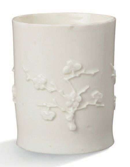 Pot à pommade en porcelaine blanche à décor de fleur de pruniers.