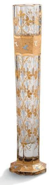 Vase en verre à décor émaillé or de rinceaux et de pampres.