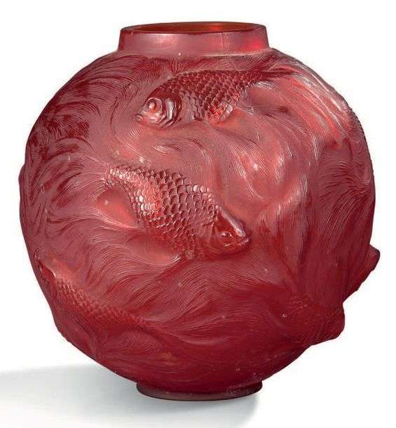 Vase modèle «Formose» en verre rouge moulépressé.