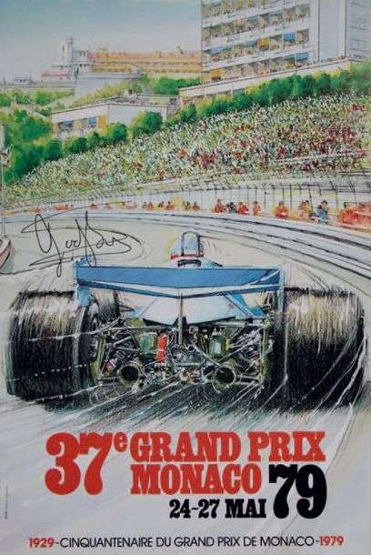 Affiche originale dédicacée par la vainqueur de la course Jody Scheckter pilote Ferrari champion du monde cette année là