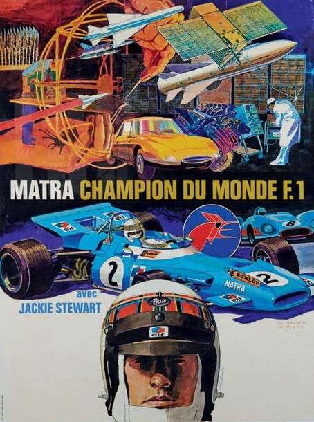 Affiche célébrant la victoire de Matra en championnat du monde de Formule 1 avec Jackie Stewart.