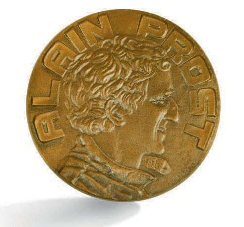 Médaille en bronze représentant le pilote et commémorant son titre de champion du monde de 1985