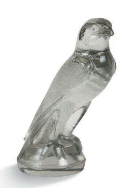 Bouchon de radiateur «Faucon» en verre blanc moulé-pressé Signature «R Lalique France» en relief dans la masse sous la base ainsi que 1124.