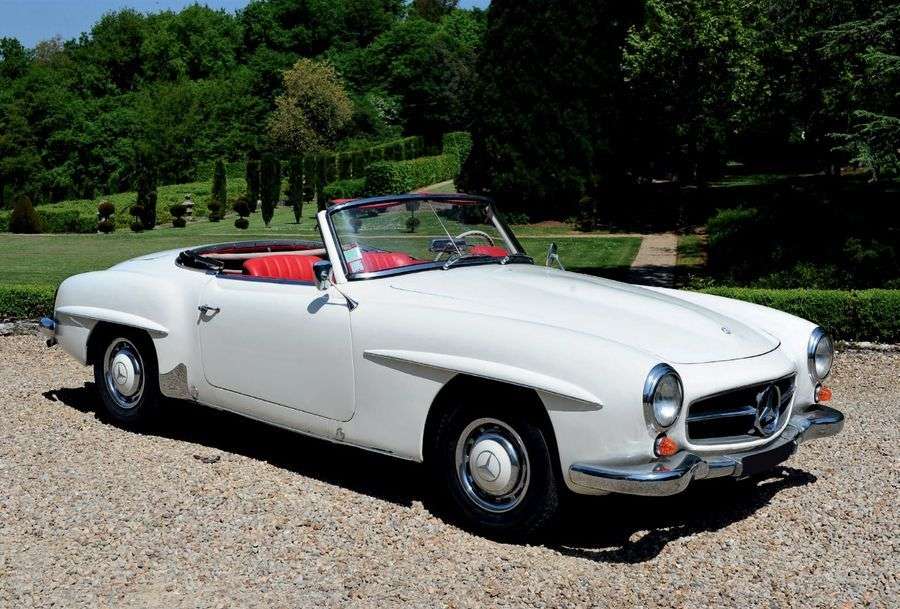 Présentée au salon de New-York en 1954, la 190 SL représentait le premier échelon de la gamme SL. La presse enthousiaste poussa la clientèle à cette dépense raisonnable. C'est ainsi qu'elle fut produite à 26 000 exemplaires jusqu'en 1963. Disponible en versions coupé avec hardtop amovible ou en version cabriolet soft-top, la majorité des presque 26000 exemplaires vendus furent livrés en configuration cabriolet avec l'option hardtop. Sur les coupés hardtop, le mécanisme de capote en toile pouvait aussi être installé en option. Voiture confortable et utilisable au quotidien, la 190 SL est animée par une mécanique éprouvée capable d'assumer également des voyages aux longs cours. Voiture de charme s'il en est, la qualité de fabrication n'en est pas moins exemplaire et conforme aux standards de la marque. Le public apprécie sa douceur et sa polyvalence, mais c'est bien cheveux au vent que cette auto mérite d'être utilisée.