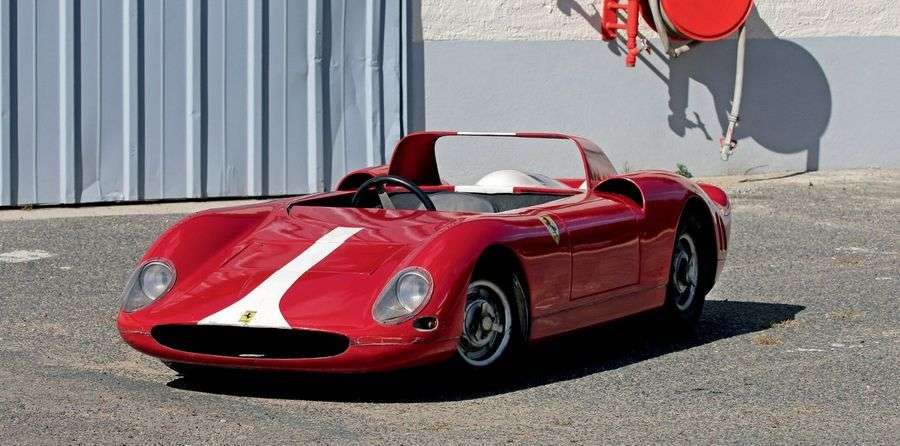 JLO 2 temps de 73 cm «en position centrale arrière avec un embrayage centrifuge. Très fidèle à celle qui remporta les 1000 km du Nurburgring en 1965 avec Surtees et Scarfiotti un mois après avoir terminé deuxième des 24 Heures de Spa avec le même équipage, elle est aussi belle à regarder que sa grande soeur. Eligible au Little Big Mans organisé dans le cadre du Mans Classic tous les deux ans par Peter Auto, elle est bien audelà de sa taille et de son moteur une vraie voiture historique! A noter que le pare-brise est manquant.